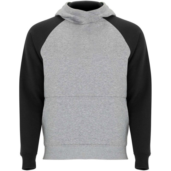 Two-colour unisex hoodie. Hood with crossed neck and metal eyelets. Contrasting inner hood, drawcord and raglan sleeves. Kangaroo pocket. Cuffs and hem in 1x1 elastane rib knit. Removable label.
