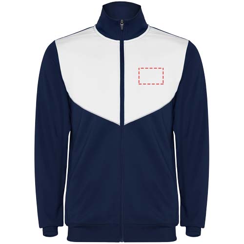 Tracksuit in lightweight and elastic fabric. Jacket with contrasting colour and sewing trims on chest. High collar with contrasting seams. Central front zip. Side pockets. 2x2 ribbed cuffs and waist. Trousers with elastic waistband and drawstring. Contrasting side piece with sewing trim. Zipped hem.