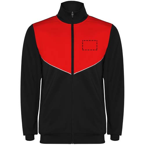 Tracksuit in lightweight and elastic fabric. Jacket with contrasting colour and sewing trims on chest. High collar with contrasting seams. Central front zip. Side pockets. 2x2 ribbed cuffs and waist. Trousers with elastic waistband and drawstring. Contrasting side piece with sewing trim. Zipped hem.