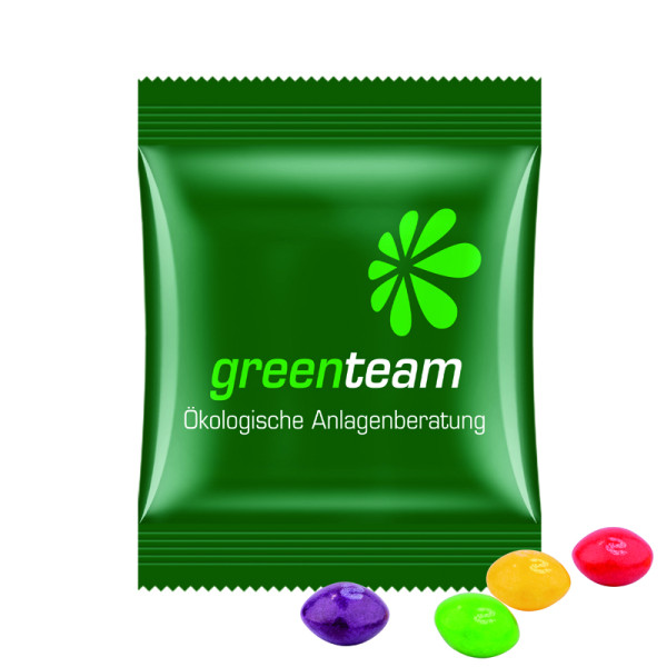 Skittles Fruits in a bag made of white foil, compostable, individually printed. Content: Skittles candy, colourful mixture, 10 g