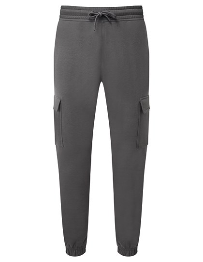 Soft feel | Inner brushed fleece | Recycled Polyester | Two front pockets | Cargo style pocket to either leg | Elasticated waistband and cuffs | Buttonhole stitched eyelets | Cords with painted metal ends | Unisex fit
