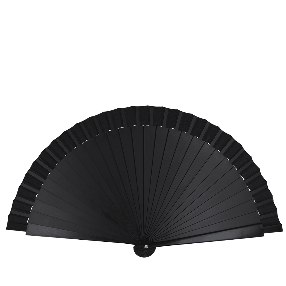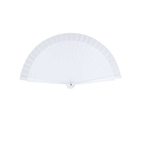 Fan with sticks in PP and matching 210D polyester fabric. With a sturdy and lightweight design.