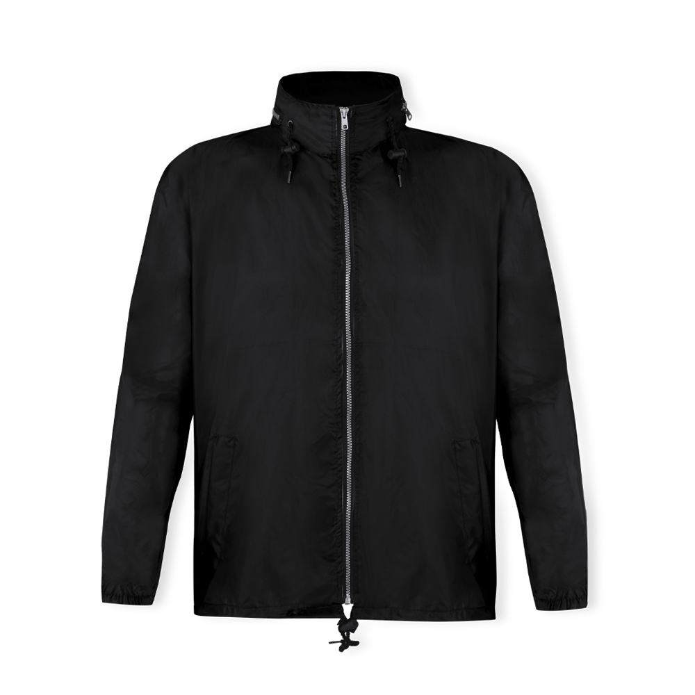Raincoat in resistant polyester 190T. Hood with adjustment laces, integrated in the zippered compartment of the neck. Main zippered closure, including a waist cord with adjustment accessories. Available in a wide range of colours and in sizes M, L, XL, XXL.
