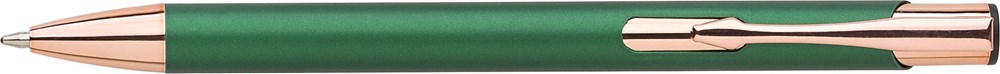 Aluminium ballpen with matte finish and rose gold details. Blue ink. When engraved the design will be silver colored.