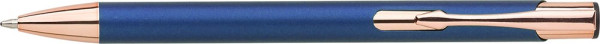 Aluminium ballpen with matte finish and rose gold details. Blue ink. When engraved the design will be silver colored.