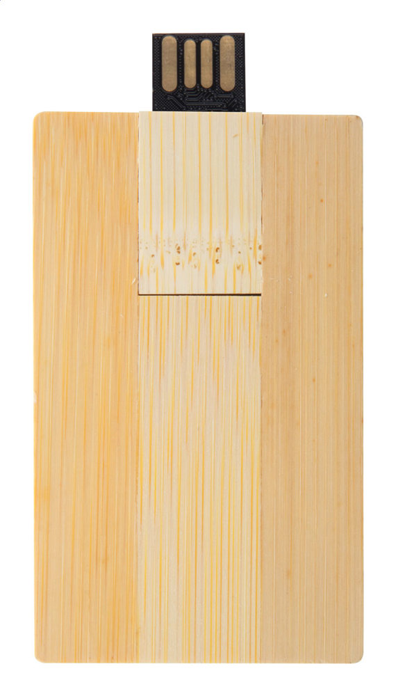 Credit card-shaped, bamboo USB flash drive. Capacity: 8/16/32GB. USB 2.0.