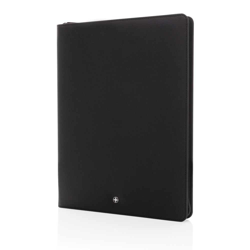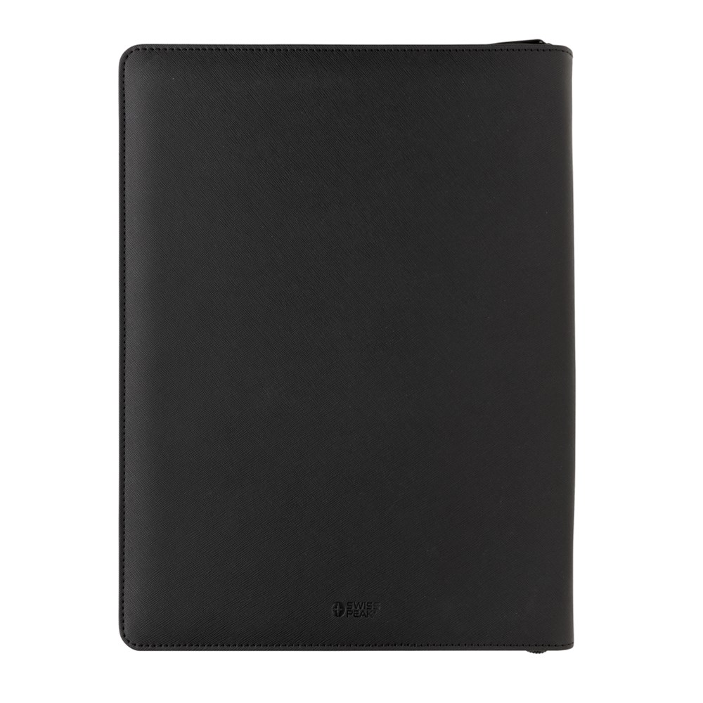 The Swiss Peak Heritage collection speaks the language of modern elegance. Presented in iconic Italian recycled PU cover with zipper . The inside provides a tablet/phone stand, gadget holders, business cards slots, sleeves for your notes and papers plus a pen loop. With lined 20 sheets A4 stone paper notepad. the portfolio is made with RCS (Recycled Claim Standard) certified recycled materials. RCS certification ensures a completely certified supply chain of the recycled materials. Made with 100% recycled RCS certified recycled PU. Total recycled content: 9% based on total item weight. PVC free.