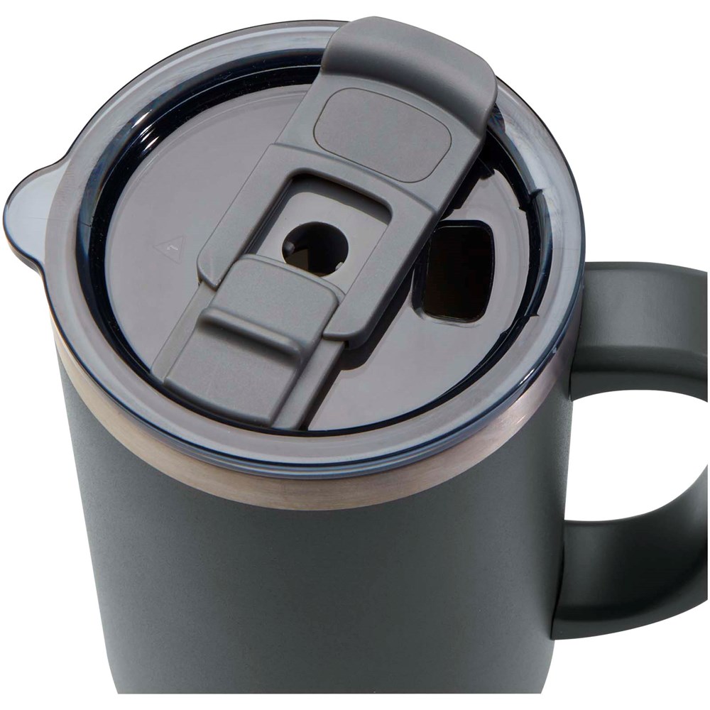 RCS certified double walled copper vacuum insulated tumbler, constructed using 91% post-consumer recycled stainless steel that will keep drinks cold for at least 24 hours, or hot for 9 hours. Features a Tritan straw, and a lid slider function to prevent spills. The 100% recycled plastic press-on swivel lid securely holds the straw in place, and can easily be rotated to expose the drink opening. Durable exterior powder coating. Volume capacity: 1200 ml. Hand wash only.