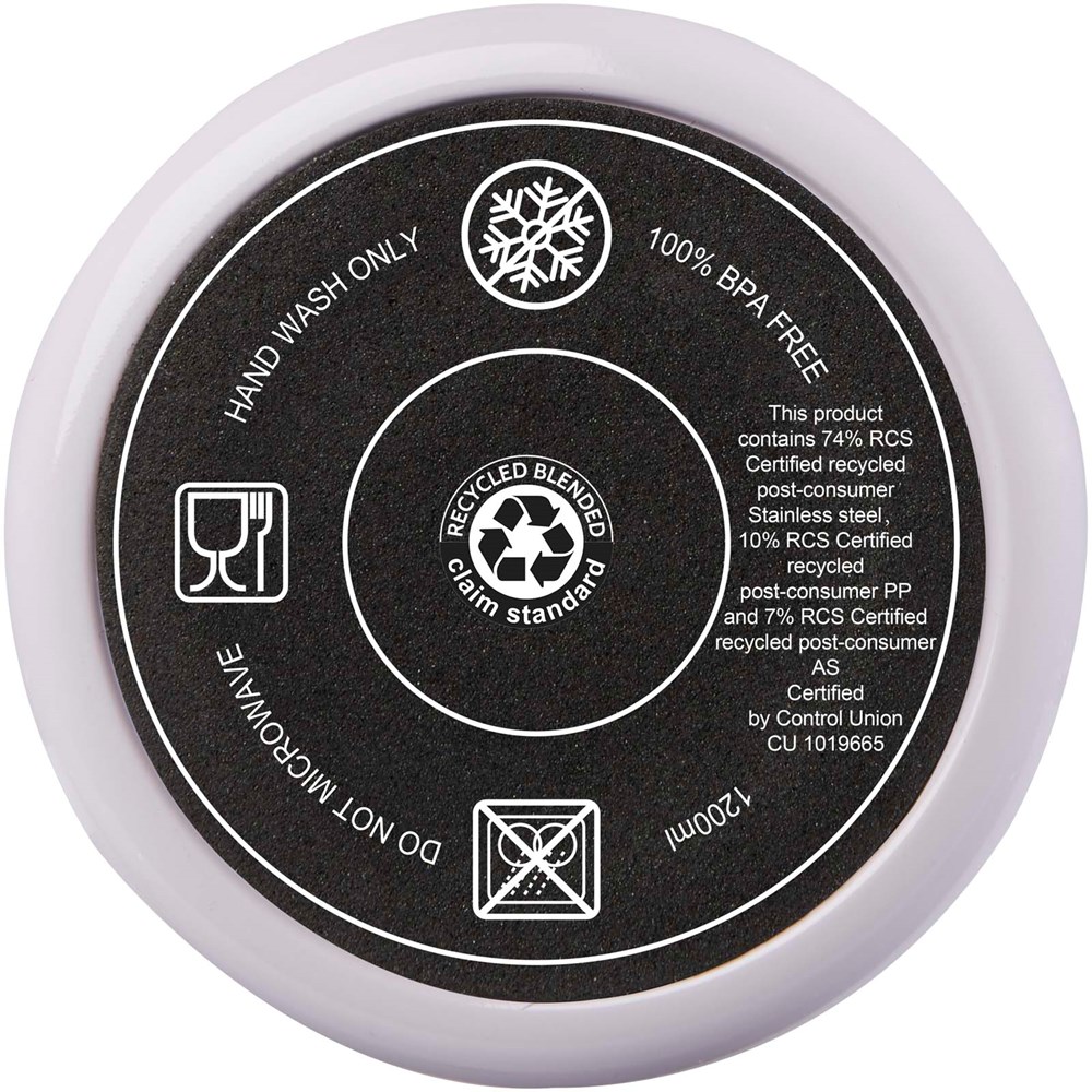 The Melbourne tumbler features double-wall air insulation, keeping drinks hot for up to 2 hours and cold for up to 4 hours. The inner wall of the tumbler is made from recycled plastic and the outer wall is made from RCS-certified recycled stainless steel. The tumbler holds 1200 ml so you can stay hydrated in style all day long. Features a splash-proof dual-vent lid with a twist-lock cap. Comes with a food-grade recycled straw. Hand wash only.