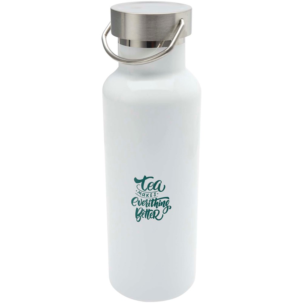Durable, double wall vacuum insulated RCS certified stainless steel water bottle, which means it keeps drinks hot for 12 hours and cold for 24 hours. The bottle features a stainless steel screw-on lid and a durable stainless steel handle loop. Volume capacity: 500 ml. Leak proof. Presented in a gift box.