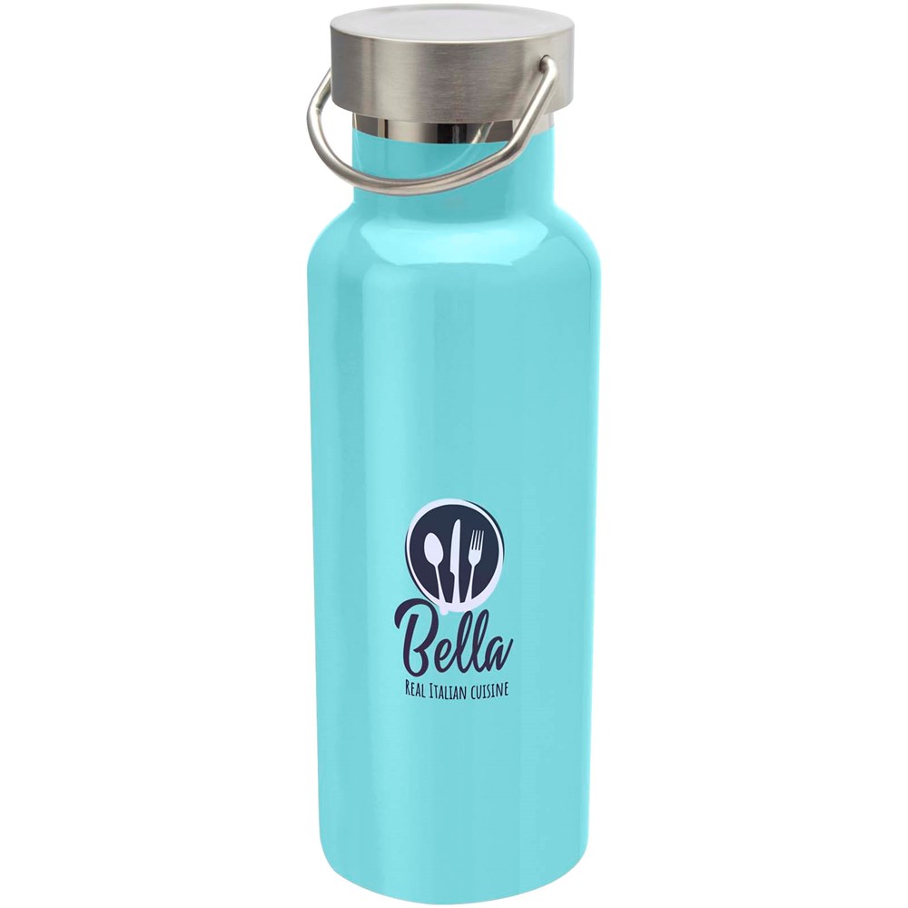 Durable, double wall vacuum insulated RCS certified stainless steel water bottle, which means it keeps drinks hot for 12 hours and cold for 24 hours. The bottle features a stainless steel screw-on lid and a durable stainless steel handle loop. Volume capacity: 500 ml. Leak proof. Presented in a gift box.