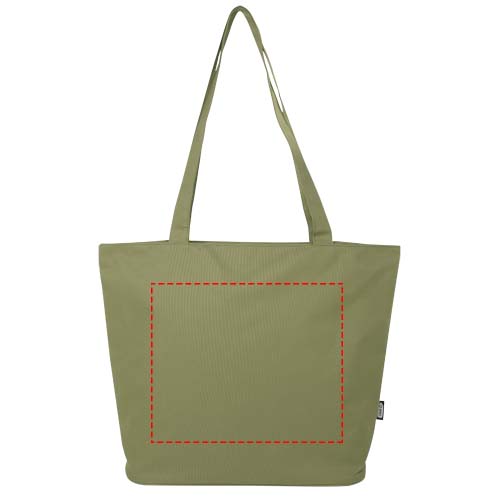 Made from water-repellent 600D RPET, the Panama GRS recycled zippered tote bag is a perfect multi-purpose bag for going to an event, to the beach, or to use for grocery shopping. It features a zippered main compartment, and a zipper pocket inside big enough to hold your phone as well as other valuable belongings. The handles are 34 cm long and therefore the tote bag is easy to carry over the shoulder. Resistance up to 10 kg weight. PVC free.