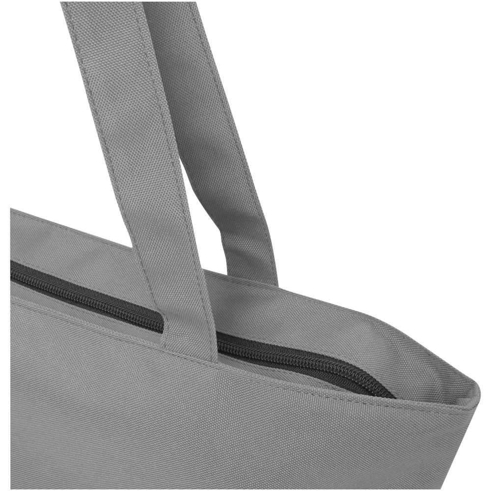 Made from water-repellent 600D RPET, the Panama GRS recycled zippered tote bag is a perfect multi-purpose bag for going to an event, to the beach, or to use for grocery shopping. It features a zippered main compartment, and a zipper pocket inside big enough to hold your phone as well as other valuable belongings. The handles are 34 cm long and therefore the tote bag is easy to carry over the shoulder. Resistance up to 10 kg weight. PVC free.