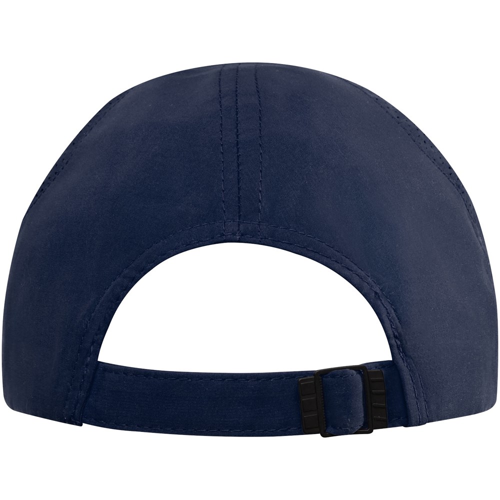 The Morion 6 panel cool fit cap is made of 110 g/m² GRS certified recycled polyester microfiber, and has a pre-curved visor with a sandwich design, adding a classic touch. The back panels has laser-cut holes for optimal ventilation, keeping you cool and comfortable during outdoor activities. Designed for a comfortable fit with a head circumference of 58 cm, the metal buckle closure allows for easy, secure adjustments. The GRS certification ensures a 100% certified supply chain, from raw material to our printing techniques, making this a more sustainable choice.