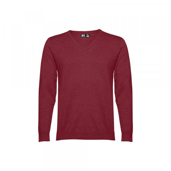Pullover with "V" neckline for men 70% cotton and 30% polyamide (220 g/m²). Features a collar, cuffs and lower part in rib and inset sleeves Sizes: S, M, L, XL, XXL