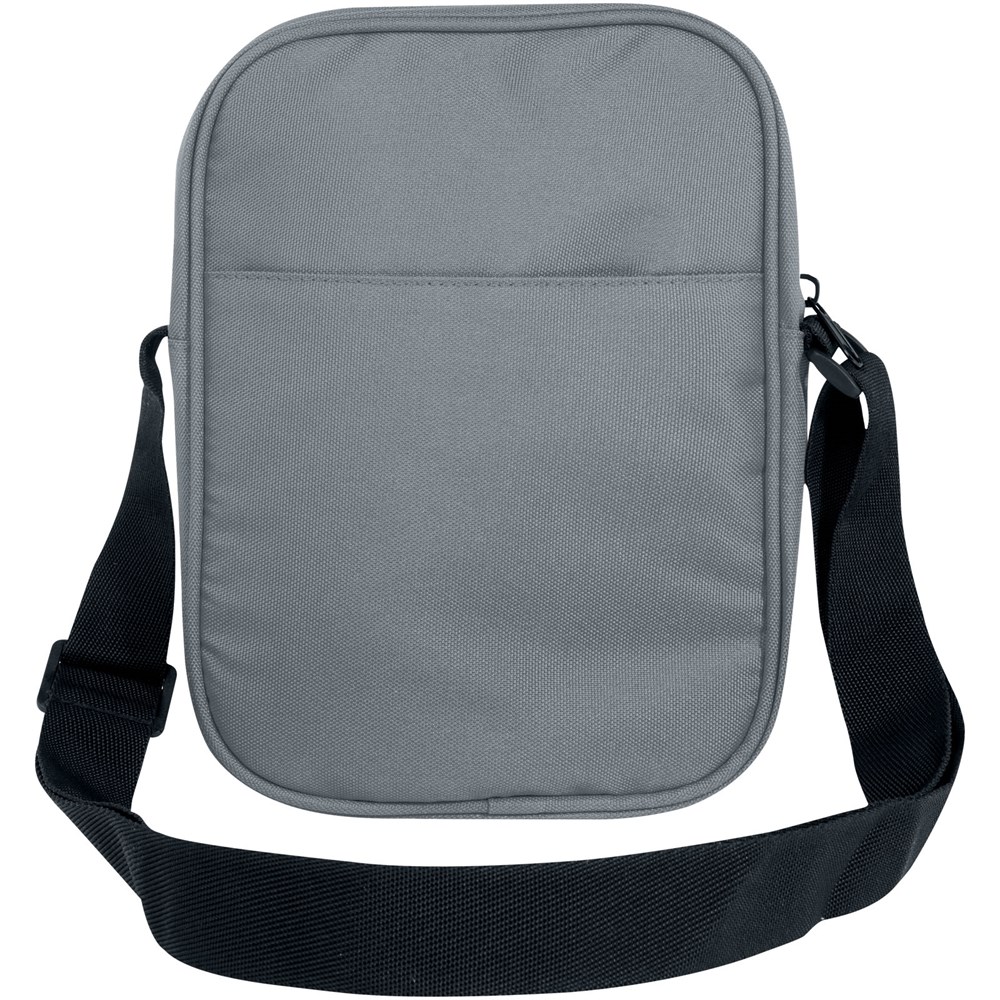 Practical and water-repellent crossbody bag made of GRS recycled polyester. It features a zipped compartment with a sleeve pocket inside to keep your everyday gadgets safely in place, a zipped front pocket for keys and valuable accessories, and an open sleeve pocket on the back for quick storage and access. With its adjustable high quality shoulder straps, the Byron crossbody bag is a perfect bag for everyday use with a minimal ecological footprint. PVC free.