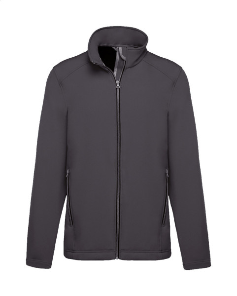 Double-layer, zipped softshell jacket with zipped side pockets. With contrasting zippers. Water repellent fabric. Outside: 95% polyester and 5% elastane. Inside: 100% polyester micro polar fleece. 300 g/m². Kariban brand product.