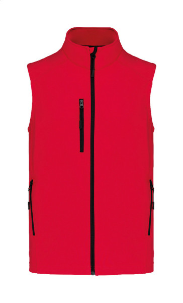 Triple-layer, breathable, wind and waterproof zipped softshell bodywarmer vest with zipped chest and side pockets. With breathable mid layer and micro polar fleece inner layer. 95% polyester and 5% elastane, 300 g/m². Kariban brand product.
