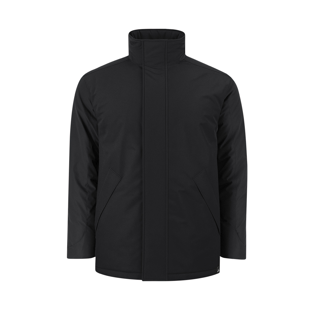 Childrens unisex padded parka made of 100% RPET waterproof fabric (recycled polyester). Features high collar with adjustable foldable hood integrated with Velcro closure, central matching zip with protective flap, and side pockets with matching zip and fixed flap. Includes an inner pocket with Velcro closure. Adjustable cuffs with Velcro. Fleece lining on collar and inside pockets for extra comfort. Includes inner access for branding on left chest and back, ideal for customization. With matching RPET label.