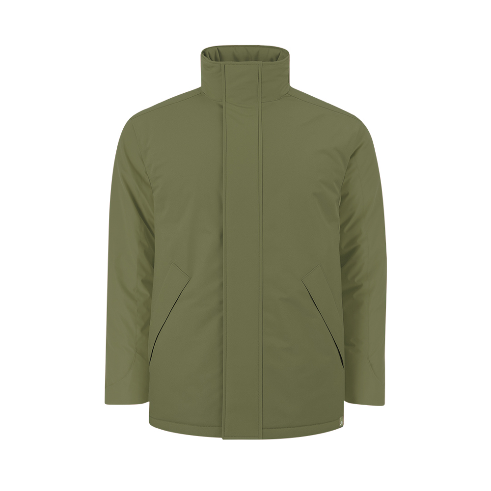 Childrens unisex padded parka made of 100% RPET waterproof fabric (recycled polyester). Features high collar with adjustable foldable hood integrated with Velcro closure, central matching zip with protective flap, and side pockets with matching zip and fixed flap. Includes an inner pocket with Velcro closure. Adjustable cuffs with Velcro. Fleece lining on collar and inside pockets for extra comfort. Includes inner access for branding on left chest and back, ideal for customization. With matching RPET label.