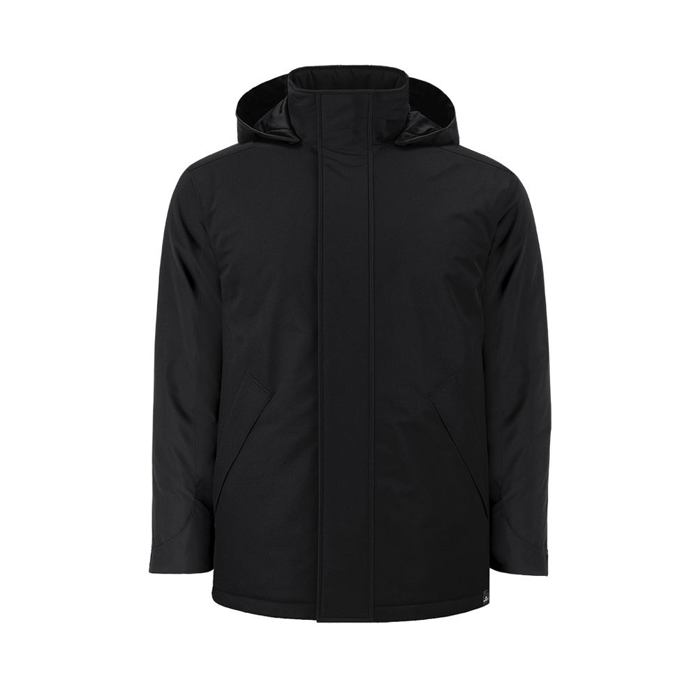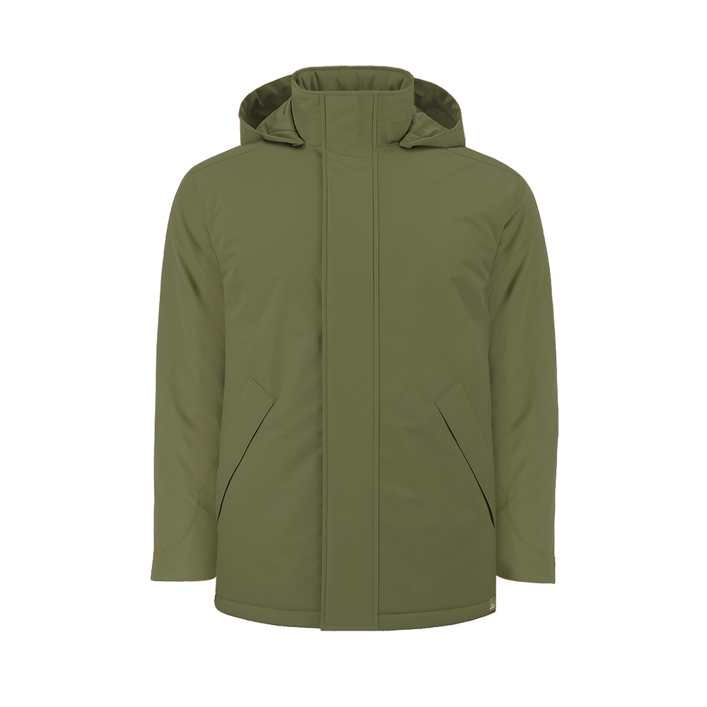 Childrens unisex padded parka made of 100% RPET waterproof fabric (recycled polyester). Features high collar with adjustable foldable hood integrated with Velcro closure, central matching zip with protective flap, and side pockets with matching zip and fixed flap. Includes an inner pocket with Velcro closure. Adjustable cuffs with Velcro. Fleece lining on collar and inside pockets for extra comfort. Includes inner access for branding on left chest and back, ideal for customization. With matching RPET label.