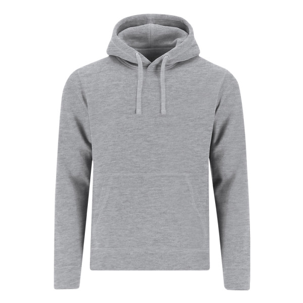 Hooded sweatshirt with lined hood in matching double-layer fabric. Made of cotton and polyester in soft brushed fleece 280 g/m. Features kangaroo pocket, adjustable drawstring with matching metal eyelets, reinforced neck tape, and 1x1 rib knit cuffs and waistband with elastane for better fit and comfort.