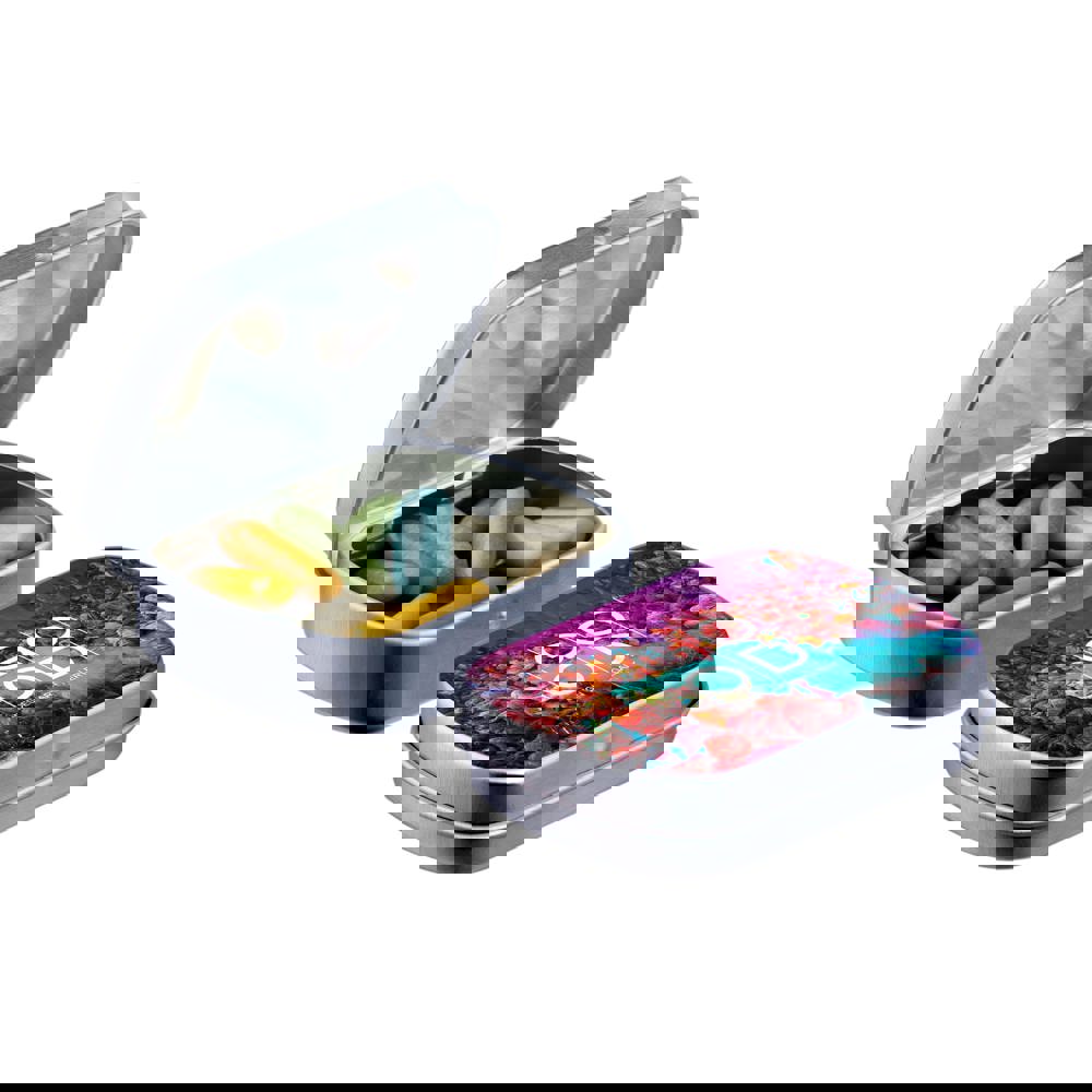 Mini white hinge tin with approx. 23 grams of Mini Choco's, printed in full color. Includes ingredient sticker and seal.