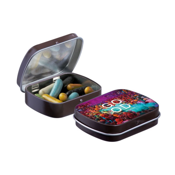 Mini hinge tin with candy