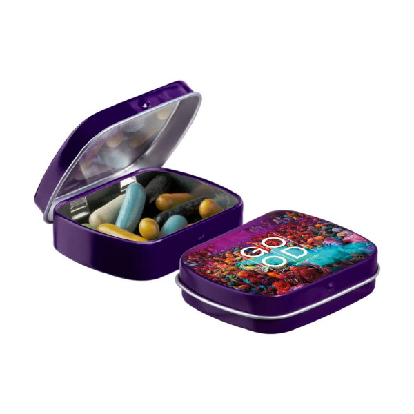 Mini hinge tin with candy