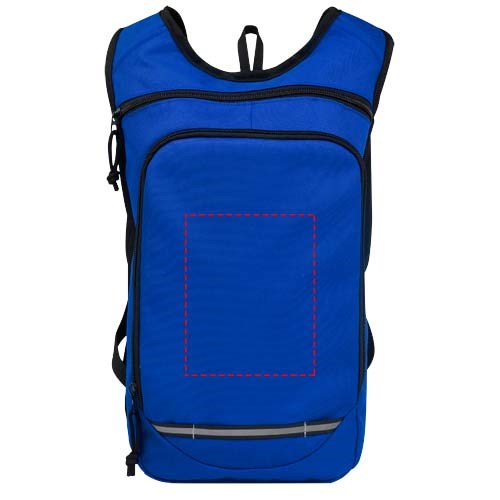 Made from 100% GRS recycled and water repellent fabric, the Trails backpack features one zippered front pocket and one zippered main compartment, and is compatible with a hydration water bladder. Reflective stripes for visibility and mesh backside for carrying comfort , making it a great sustainable choice for outdoor activities.