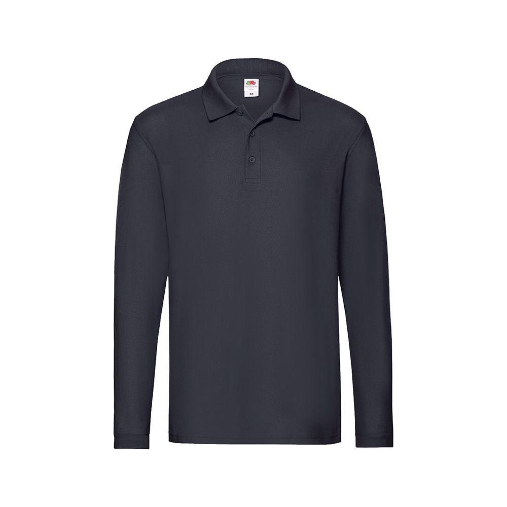 Polo shirt Premium Long Sleeve by Fruit of the Loom. Made in 100% cotton 180g/m2, with soft touch and classic cut. With side split for optimum fit, three-button placket with matching dye and cotton/elastane cuffs. Available in a wide range of colours. Sizes S, M, L, XL, XXL.