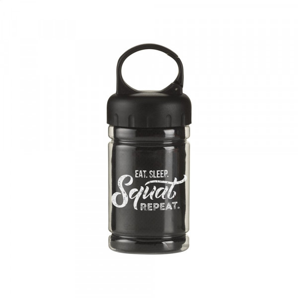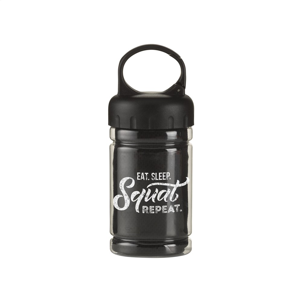 Special cooling towel made from 100% polyester. After immersing in cold water, this towel is an effective cooling instrument and a deterrent to sunburn. Size 30 x 80 cm. Ideal to wear as a neck cooler. Comes in a transparant case with ABS screw cap with carabiner hook.