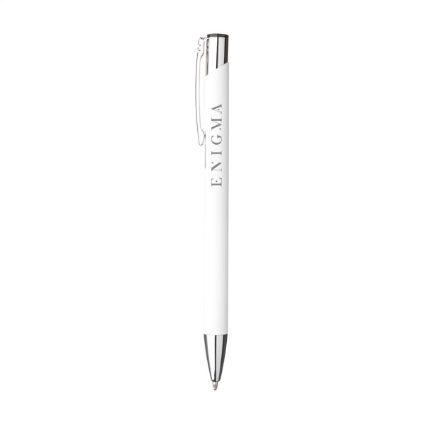 Aluminium ballpoint pen with metal clip and blue ink. The barrel is covered with an attractive rubberised coating. The barrel provides a large print area for text or a logo.