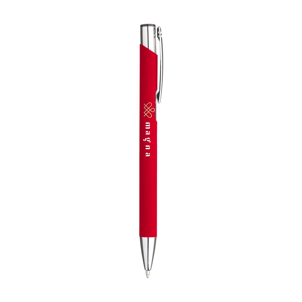 Aluminium ballpoint pen with metal clip and blue ink. The barrel is covered with an attractive rubberised coating. The barrel provides a large print area for text or a logo.