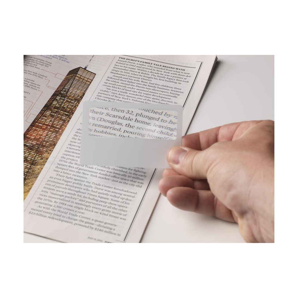 Handy reading glass in credit card format. Magnifies up to 3 times.