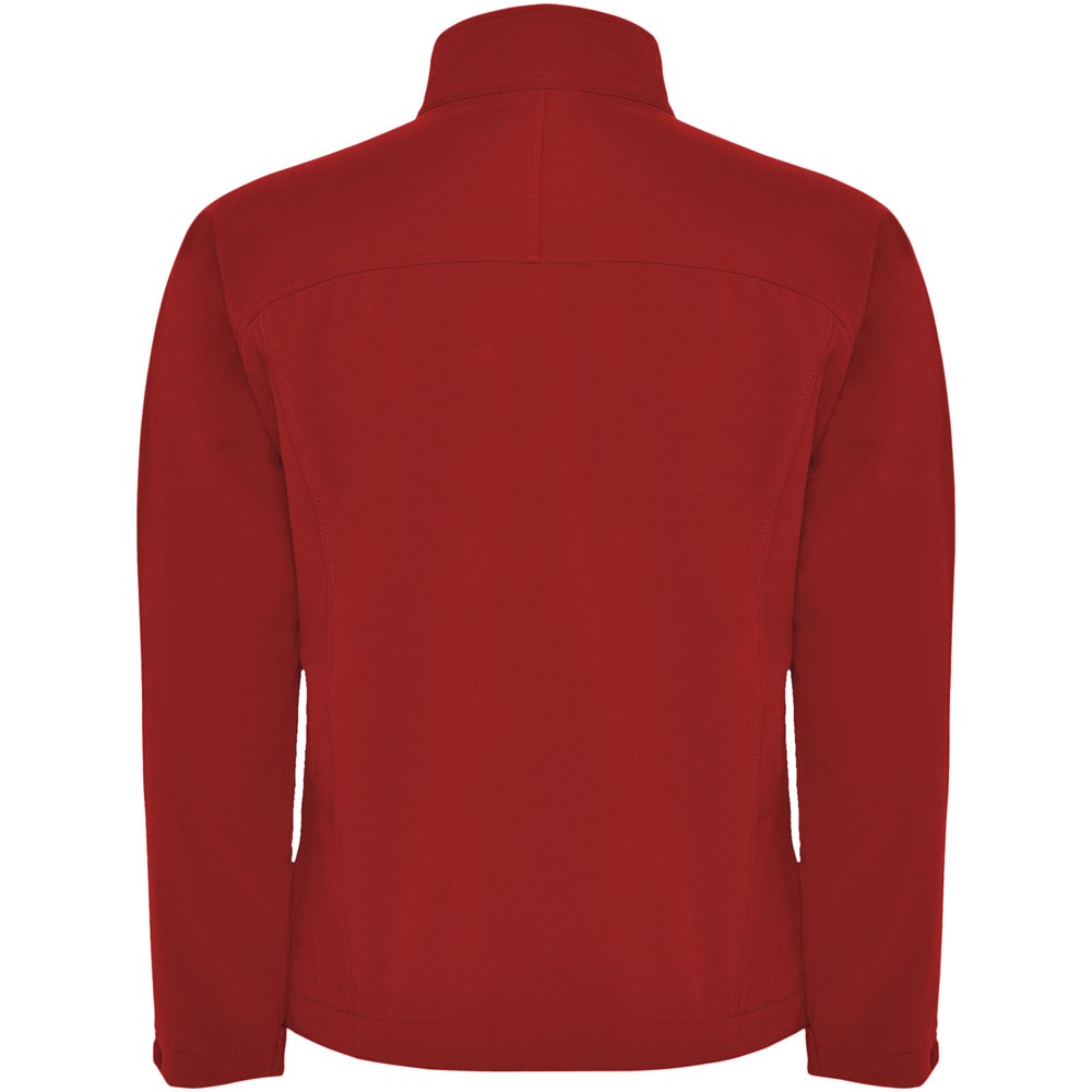 3-layer softshell jacket: Full zip with chin protector and puller. Outer pocket on chest with zip and puller. Outside pockets with zipper and puller. Hook and loop fasteners in cuffs. Cut or yoke-shaped area on the front chest. Cut or shaped yoke on the back. Hem with elastic cord and adjustable stoppers inside. 1000 mm water resistant. Wind-proof. The model is 184 cm and is wearing size L.