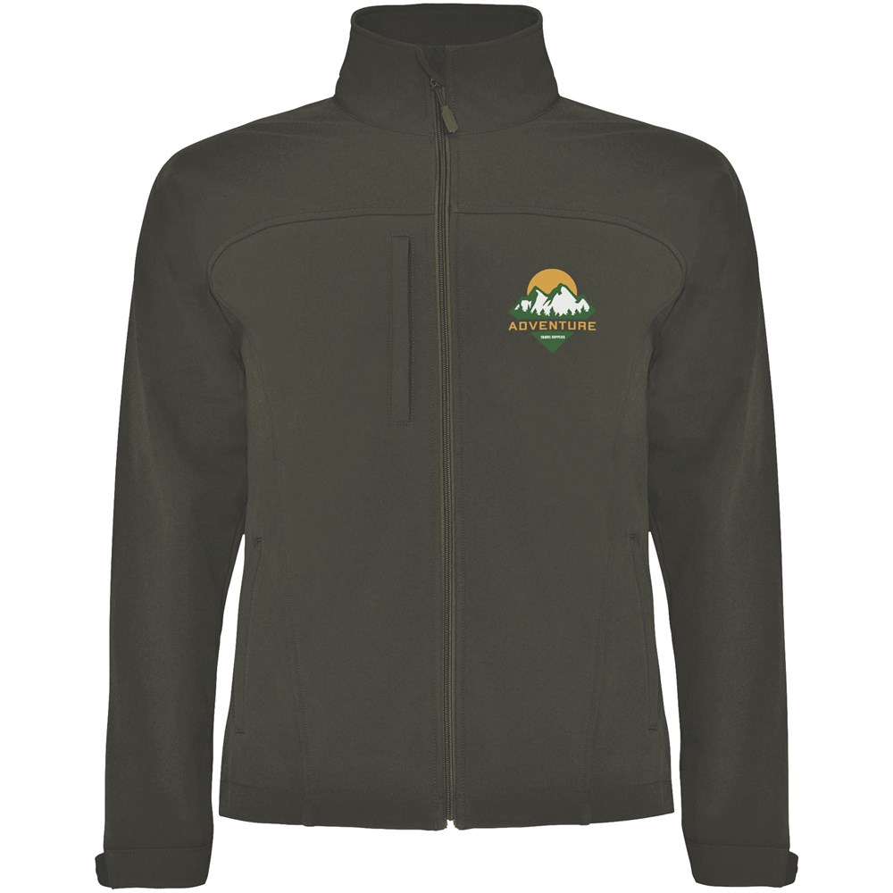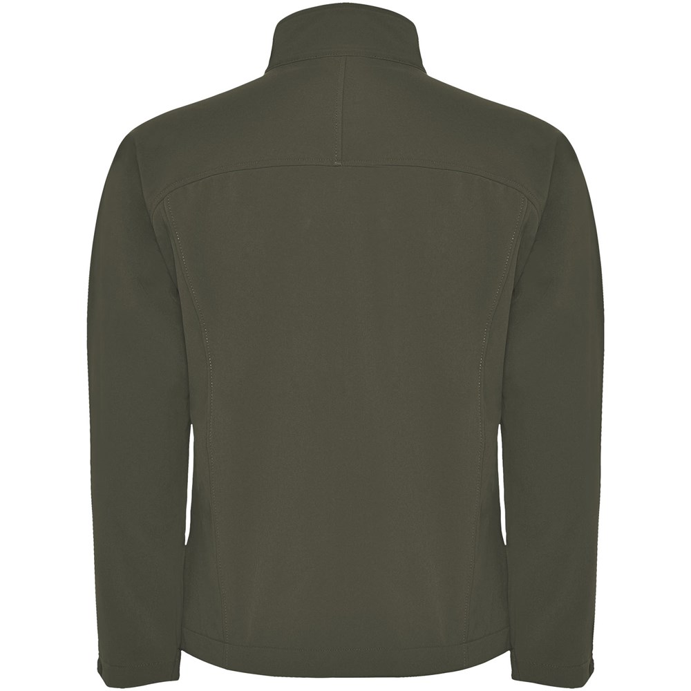 3-layer softshell jacket: Full zip with chin protector and puller. Outer pocket on chest with zip and puller. Outside pockets with zipper and puller. Hook and loop fasteners in cuffs. Cut or yoke-shaped area on the front chest. Cut or shaped yoke on the back. Hem with elastic cord and adjustable stoppers inside. 1000 mm water resistant. Wind-proof. The model is 184 cm and is wearing size L.