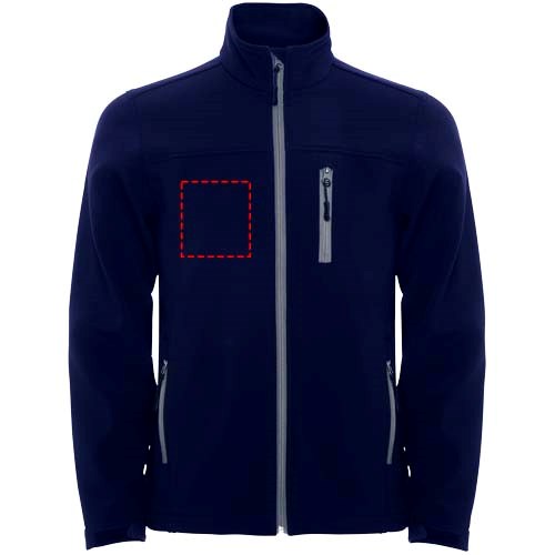 2-layer softshell. Inverted sealed effect zip with matching chin protector and zipper puller. Cut detail on chest. Three zip pockets with matching puller. Hook & loop fasteners in cuffs. Adjustable bottom hem with elastic drawcord and stoppers. 1000 mm water resistant. Wind-proof fabric. The model is 185 cm and is wearing size M.