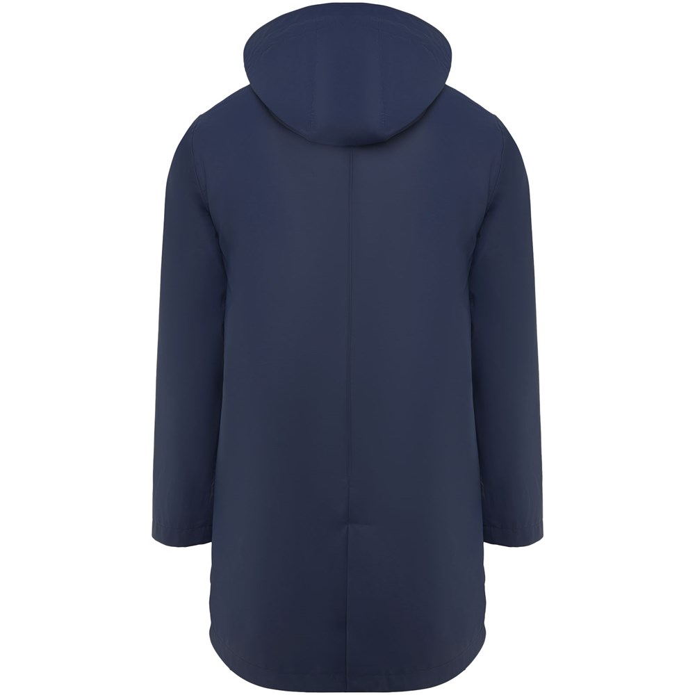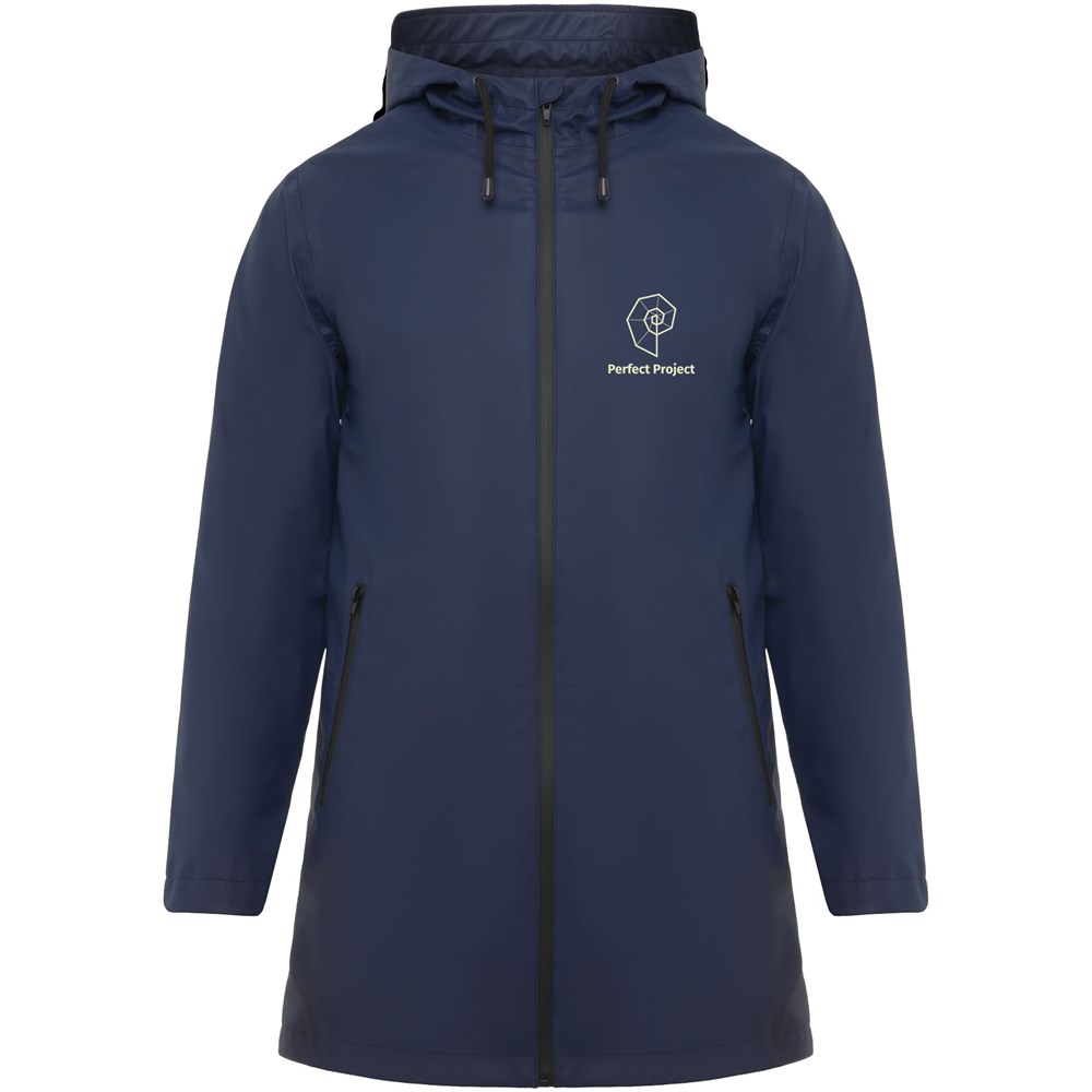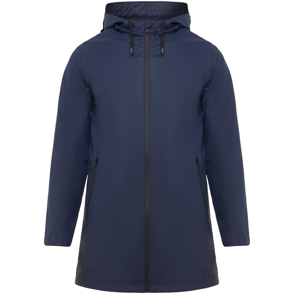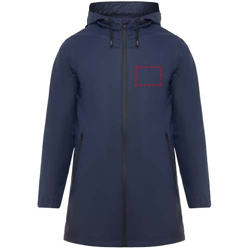Waterproof raincoat. Hood with peak. Heat-sealed zips and seams. Contrasting details in black. Two side pockets with zip. Slit on back hem. Removable label. Waterproof. The model is 185 cm and is wearing size M.