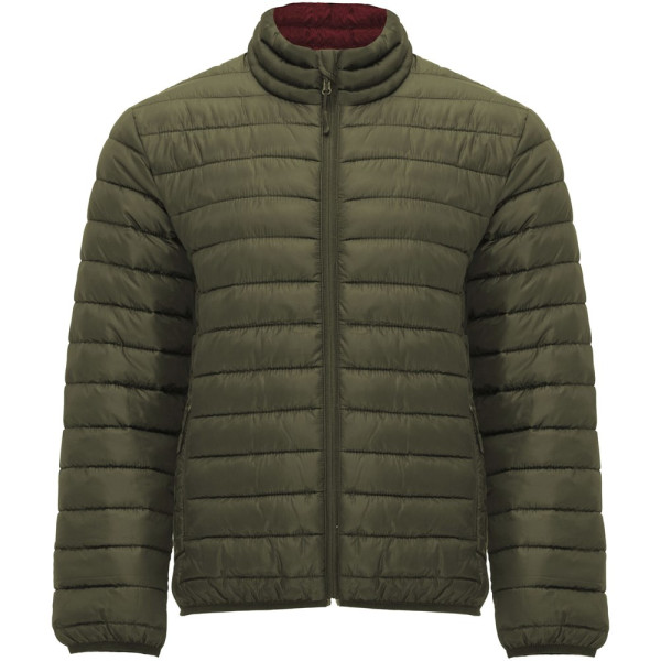 Men's quilted jacket with feather touch padding. Inverted zippers with matching chin protector and puller. Two front pockets with zippers. Matching elastic edging in collar, cuffs and hem. Contrasting inner lining. Includes stow carry bag. Lightweight and foldable garment. Removable label. Water resistant. Wind-proof. The model is 184 cm and is wearing size L.