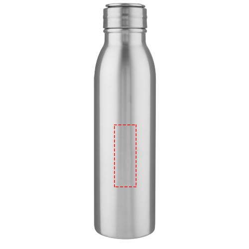 RCS certified stainless steel, single-walled water bottle with a screw-on, spill-resistant lid and a durable, zinc-alloy carry-loop. BPA free, tested and approved under German Food Safe Legislation (LFGB). Tested and approved for phthalates content according to REACH regulations. Fits most standard car cup holders. Volume capacity is 720 ml. Hand wash recommended. Presented in a recycled cardboard gift box.