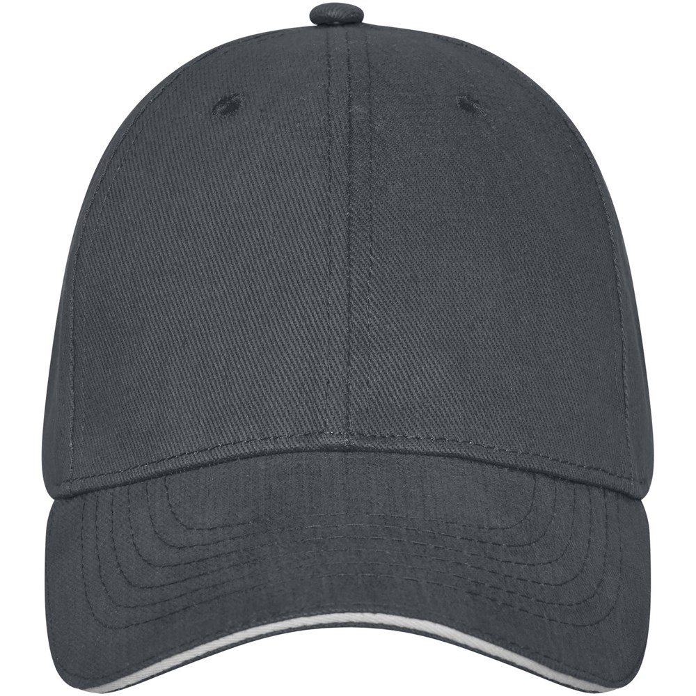 The Darton 6 panel sandwich cap features a pre-curved visor with a stylish sandwich design, offering not only classic aesthetics but also crucial sun protection. The embroidered eyelets ensure optimal ventilation, keeping you cool and composed during outdoor activities. With a head circumference of 58 cm, it promises a comfortable fit for various head sizes. The metal buckle closure allows for easy and secure adjustments. Made from 260 g/m² heavy brushed cotton twill. The ideal accessory for casual outings or outdoor activities.
