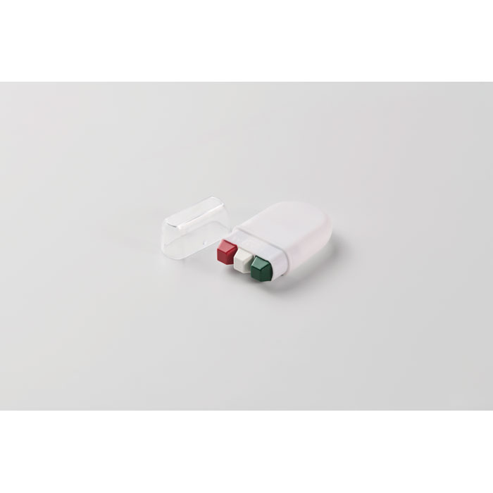 Body paint stick in national flag colours with wax paint in PP case and PS lid.