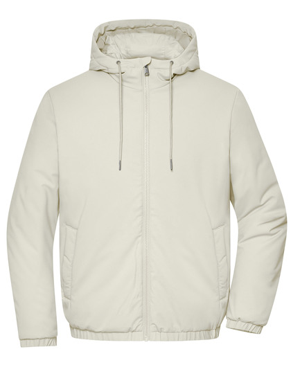 Comfortable to wear thanks to lightweight material and soft Sugenro padding (recycled) | Water- and dirt repellent | Attached hood with drawstring | Elasticated waistband and cuffs | 2 side pockets with press stud fastening | 1 inner pocket with zip fastening | Zip fastening at the back CatalogNr: JN1380DT Composition: Outer fabric + Wattierung: 100% Polyester; Lining: 100% Polyamid Care Instructions: Washable at 30°C|Suitable for tumble drying Product: Jackets Sleeve: Long sleeve|With cuffs Properties: Water-repellent Colorfulness: 1-coloured Menu: Men|Partner Composition: Polyester (100%)|Polyamide (up to 100%) Jackets (kind): Bomber jackets