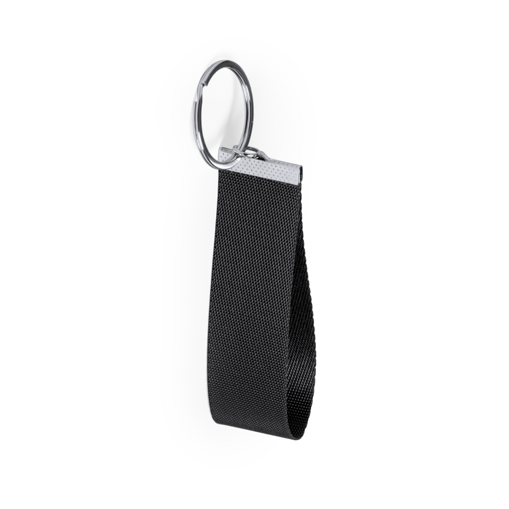 Keychain in resistant polyester material with accessories in metal. Available in a wide range of colors.