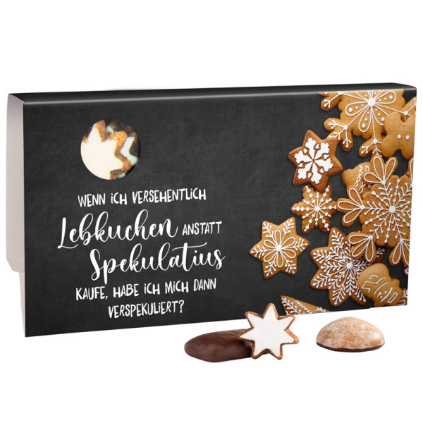 Haeberlein-Metzger gingerbread mix in a promotional slipcase made of white cardboard, individually printed. Content: Haeberlein-Metzger gingerbread mix with eight different varieties, 150 g
