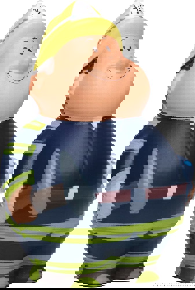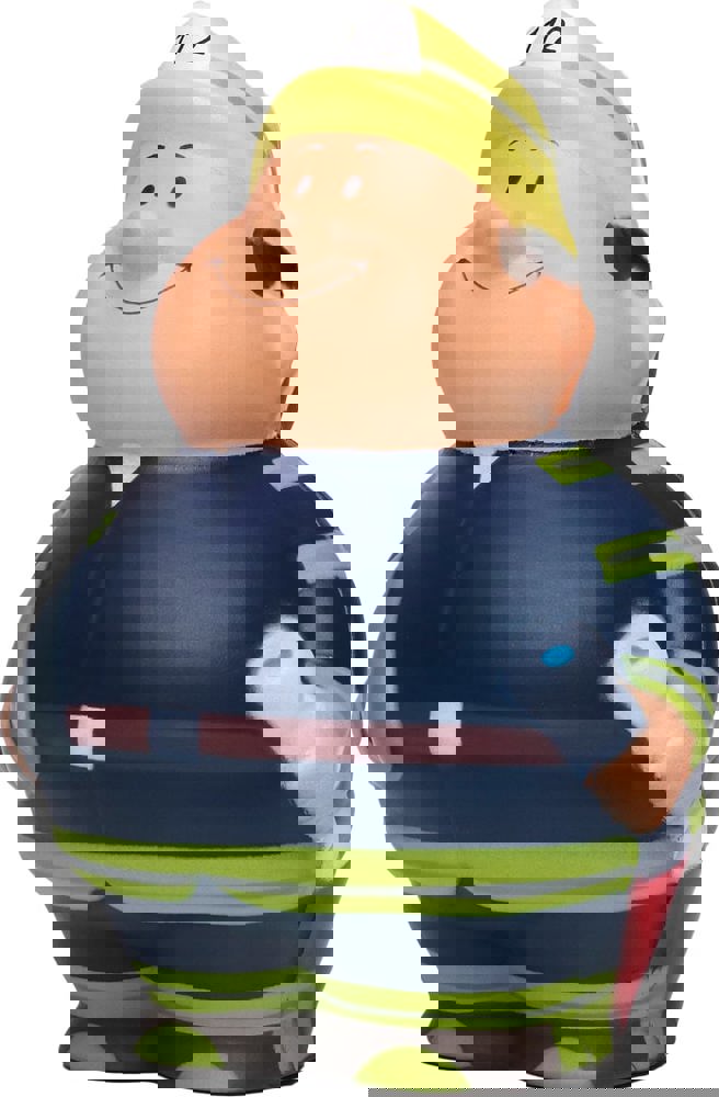 Bert® is there immediately when you need him - he doesn't scorch anything. Instead, he ignites enthusiasm when it comes to combating stress. With the axe in one hand and the hose in the other, the fire-brigade uniform and the helmet, stress has no chance. Simply squeeze fire fighter Bert® to reduce stress. Due to the material's properties, the product returns to its original shape.