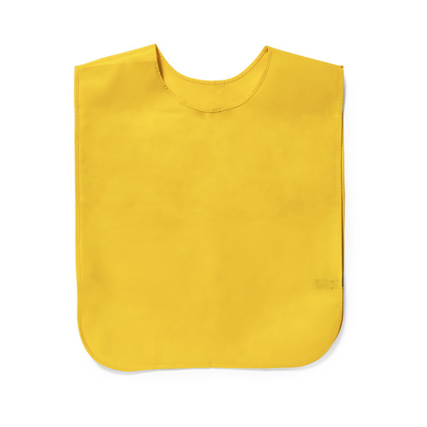 Sporty adult bib in resistant non-woven with bright tones and elasticated sides. One size fits all.