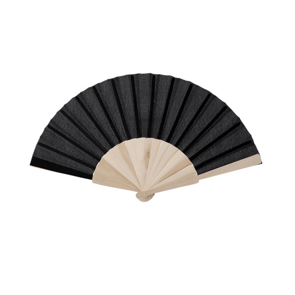 Nature line fan with ribs made in resistant wood with a natural finish. Fabric in resistant 190T polyester, available in a wide range of colours and presented in an individual white cardboard box.