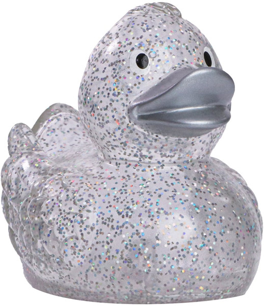 Squeaky duck classic, glitter/silver, 7,5 cm